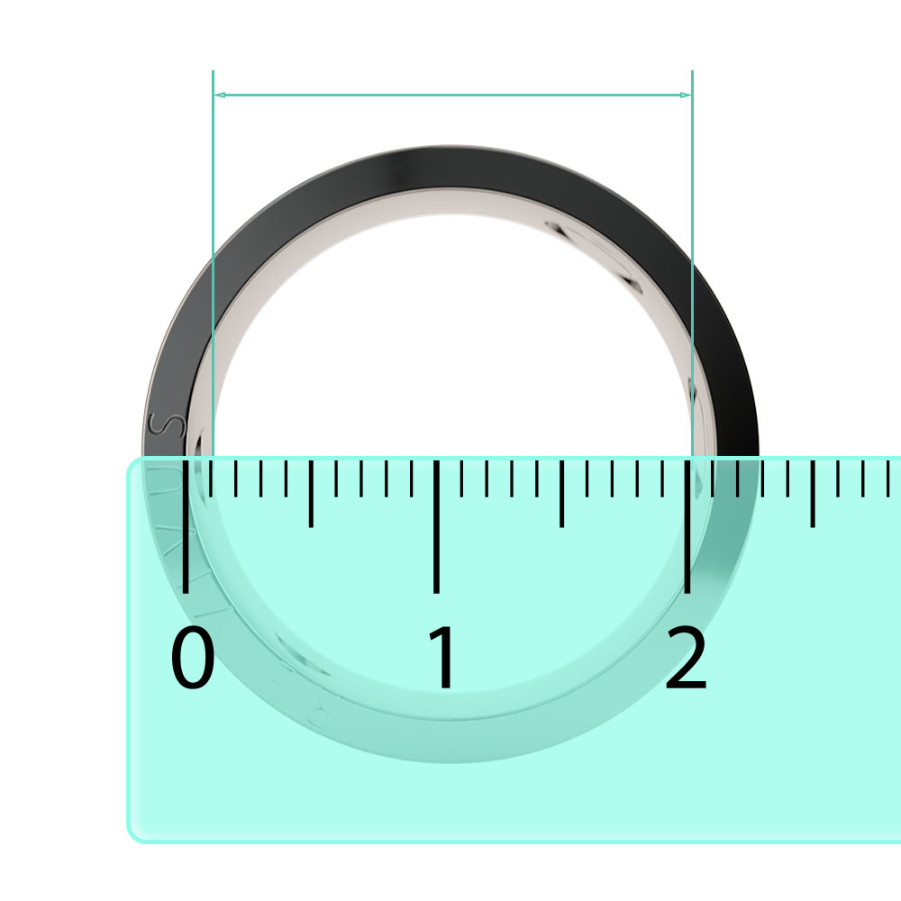Vzemite prstan, ki vam udobno ustreza, in izmerite njegov notranji premer z ravnilom ali merilnim lističem. Primerjajte izmero z našo tabelo velikosti in poiščite svojo popolno REVIVUS velikost.